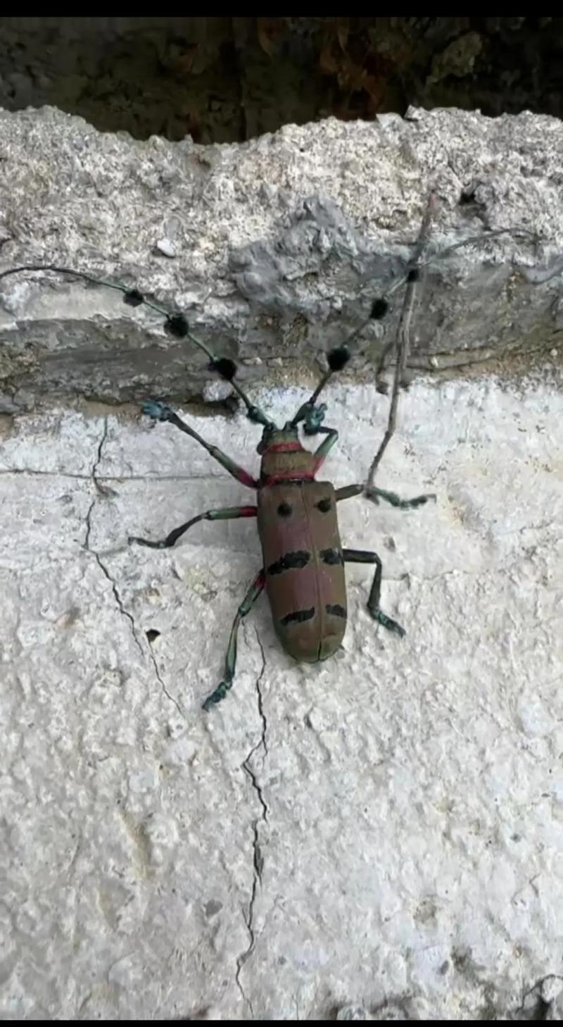 主要起嗅觉和触觉作用,有的还有听觉作用,可以帮助昆虫进行通讯联络、寻觅异性、寻找食物和选择产卵场所等活动。天牛成虫体呈长圆筒形,背部略扁;触角着生在额的突起(称触角基瘤)上,具有使触角自由转动和向后覆盖于虫体背上的功能。