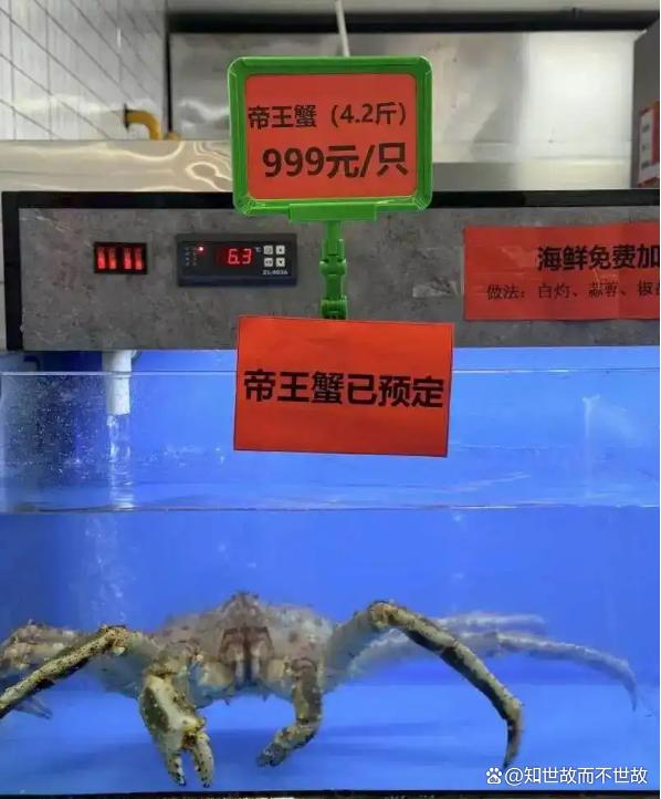 南京大学仙林校区第九食堂的玻璃水池里,一只只帝王蟹挥舞着它们的长腿,在波光粼粼的水中划出优雅的弧线。标价999元,这是高校食堂还是海鲜市场?