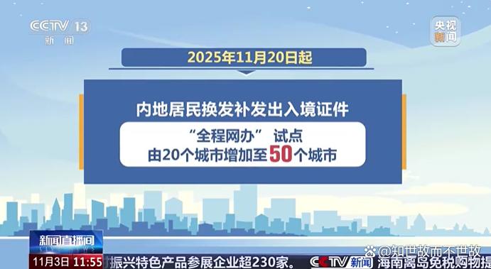 内地居民换发补发出入境证件“全程网办”试点城市范围也将扩大。自11月20日起,试点城市由现有的20个增加至50个。