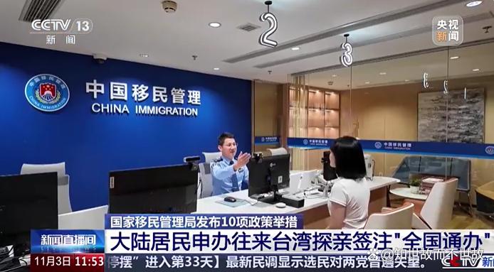大陆居民赴台探亲实现“全国通办”。自11月5日起,大陆居民拟往来台湾地区探亲的,可向全国任意一个县级以上公安机关出入境管理机构提交探亲签注申请,不再需要返回户籍地办理。