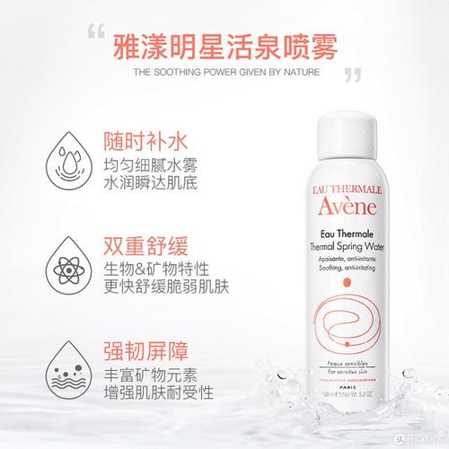 2、我们先来说说雅漾喷雾的使用方法。在清洁脸部后,将面部与喷嘴保持适当距离,轻轻地喷洒在脸上。然后用手轻轻拍打面部,帮助皮肤吸收。在日常护肤中,我们可以将雅漾喷雾作为第一步使用,它可以帮助皮肤补水、镇静并增强皮肤屏障功能。接下来是爽肤水的使用顺序。