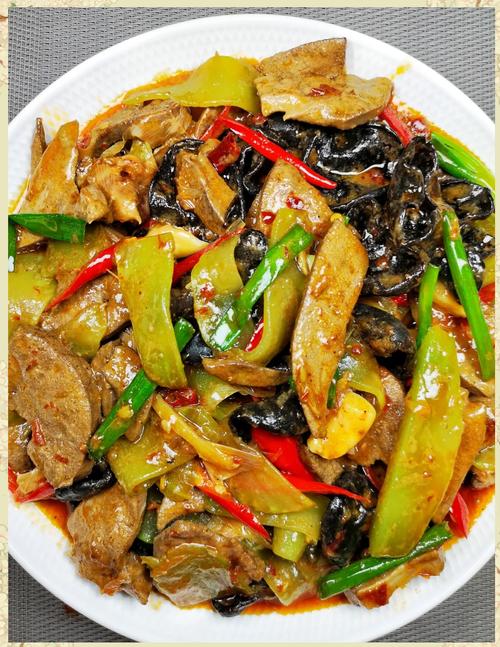 2、青椒炒猪肝是一道色香味俱佳的家常菜,不仅美味可口,而且营养价值极高。猪肝含有丰富的蛋白质、铁、维生素A、维生素B维生素B12等营养成分,具有补肝明目、养血益气的功效;青椒则富含维生素C和膳食纤维,有助于增强免疫力和促进消化。下面将详细介绍如何烹饪这道营养极高的菜肴。
