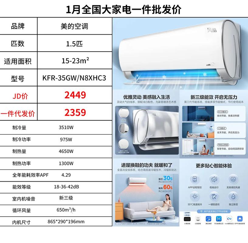 2、空调制冷功率并非越大越好或越小越好,需根据实际使用场景合理选择。制冷功率选大的情况:若房间面积较大,如30平米以上的客厅,选择制冷功率大的空调,能快速让室内达到设定温度,即使在炎热天气或多人使用时,也能保持凉爽舒适。