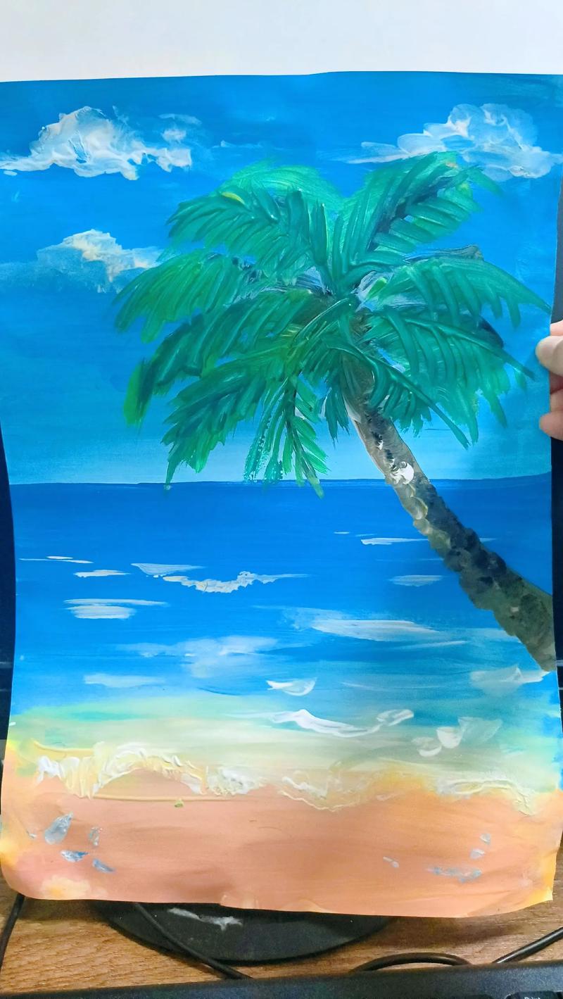 1、把观察到的整体色调用大号笔把色块摆在画纸上。用色薄厚有别,用色看似是个小事,但最合适最容易掌握的是摆笔触的画法。在颜色较厚的情况下,不会使色块之间的颜色相混,就不会使颜色变脏,保持画面颜色的干净、亮丽。