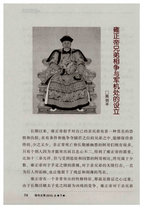 1、表明他很希望皇权能集中。从顺治到康熙两代皇帝都处于皇权不集中的境况,主要是努尔哈赤定了一个机构---议政王会议,这个机构权利大到可以决定罢免皇帝,从多尔滚到鳌拜都是这个机构的主要负责人。