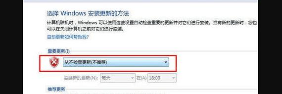 通过控制面板关闭自动更新 点击“控制面板”,然后选择“系统和安全”。 选择“Windows Update”,在该界面中找到“更改设置”选项。 在“重要更新”下拉菜单中选择“从不检查更新”,系统就不会再自动检查并安装更新了。