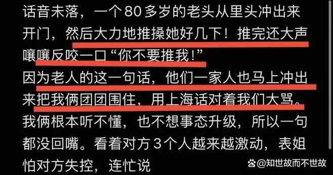 话音未落,一位80多岁的老人猛地从屋内冲出,使劲推搡表姐,并高声喊道:“你不要推我!”这反咬一口的操作,让表姐瞬间愣住。
