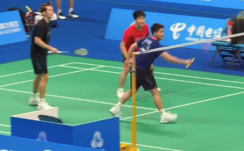在深圳体育中心体育馆,记者看到了正在场地内进行适应性训练的广东队,梁伟铿在最中间的一片场地内和队友们训练。