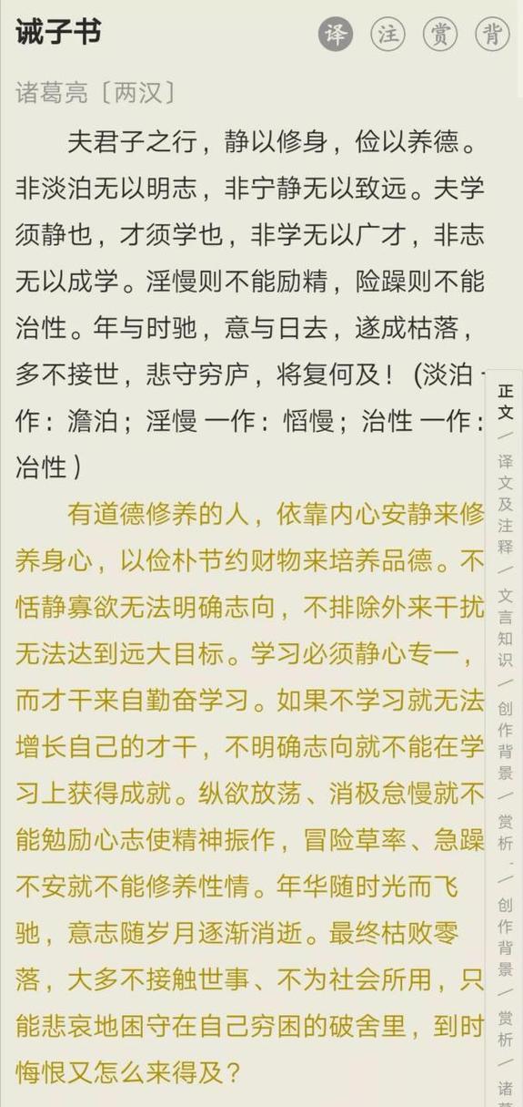4、复:又。将复何及:又怎么来得及。出自三国时期政治家诸葛亮临终前写给他儿子诸葛瞻的一封家书《诫子书》,原文:夫君子之行,静以修身,俭以养德。非澹泊无以明志,非宁静无以致远。夫学须静也,才须学也,非学无以广才,非志无以成学。淫慢则不能励精,险躁则不能治性。