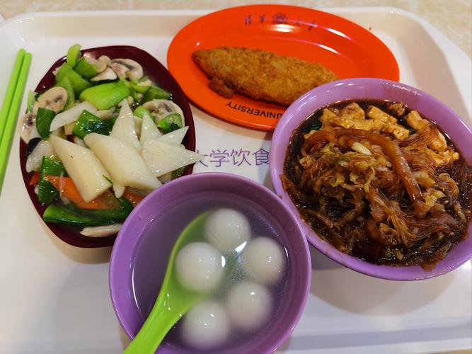 3、清华大学的食堂汇集了各地的美食,从河南的胡辣汤到东北的锅包肉,再到南方的虾饺,应有尽有。价格亲民,大学生线上分享午餐,真材实料的鱼丸只需5元/个,鱼饺2元/个,拌面6元/份,煸肉5元/份,五香卷9元/个,总体算下来不到20元,性价比极高,学生们吃得津津有味。