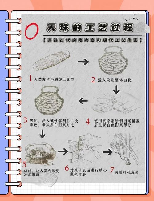 4、原料开采:天珠的原料主要是玛瑙等矿石,这些矿石在开采后需要经过人工抛光处理。绘制花纹:在抛光后的矿石上,喇嘛们会用特殊工艺绘制出各种花纹和图案。镶蚀纹理:第一种:镶蚀玛瑙,黑底上线。将特定的涂料涂在红色或黑色玛瑙上,形成白线。这种方法制作的天珠颜色可能不稳定,长时间会褪色。