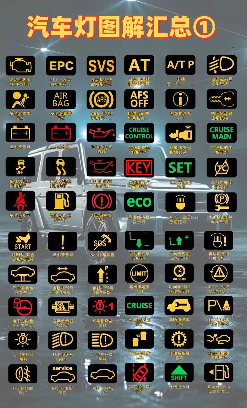 发动机故障指示灯(Check Engine):当此灯亮起时,通常表示发动机存在某个问题,可能需要检查氧传感器、火花塞等部件。油压警告灯:此灯亮起时,表示发动机的油压可能过低,需要立即检查机油,以防发动机受损。
