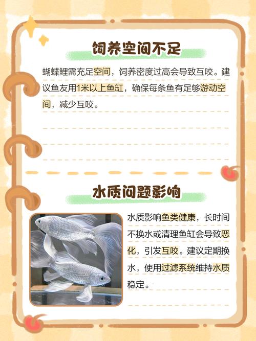 原因:锦鲤需要充足的空间。如果活动空间太拥挤,锦鲤之间就会出现撕咬现象。防止办法:养殖者要选择大的水族箱养殖锦鲤,而且密度不能大,保证每一条锦鲤都有足够的活动空间。水质不洁净 原因:长时间没有换水或者清理鱼缸,使缸内的水质变坏,锦鲤身上出现菌。这时,锦鲤会互相咬身上的菌。