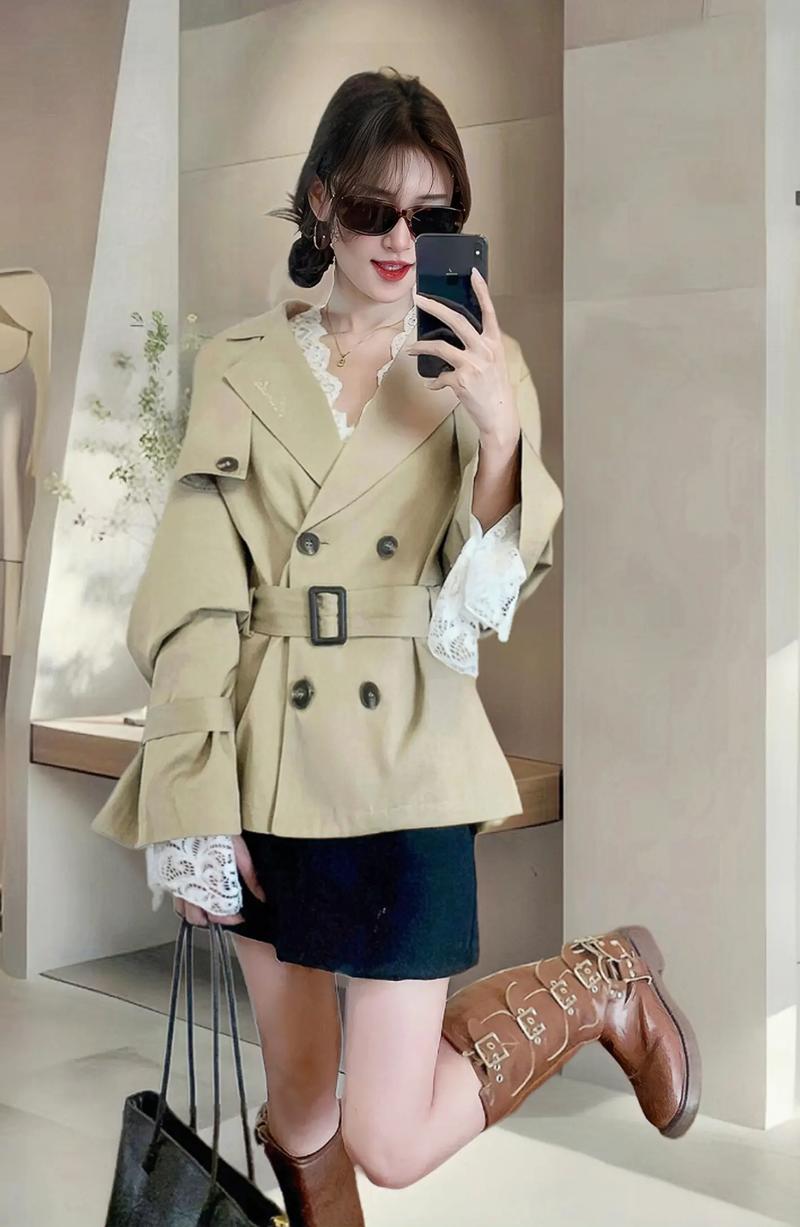当卡其色外套与黑色内搭搭配时,展现的是另一种强烈的对比美。这种组合对身高没有严格要求,适合各种身高的女性。系上腰带,可以突出腰线,显得优雅又婉约;而解开穿着,则透露出随性大气的感觉。黑色内搭的正式与休闲兼顾,既适合职场穿着,也适合日常休闲,透露出智慧与干练的女性魅力。在挑选卡其色外套时,应考虑自身的身形特点。