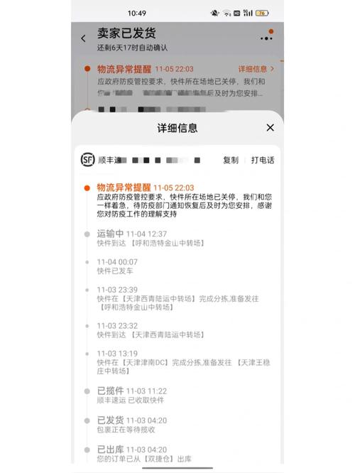 5、快递从内蒙古呼和浩特到江苏一般需要3天左右,但具体时间受多种因素影响,具体如下:航空件:如果是通过航空运输,通常可以在第二天送达,但到达江苏后还需进行分拣和派送,这一过程可能需要额外1至2天。因此,航空件的总到达时间通常是较快的。陆运件:对于陆运件,一般需要3天内送达。