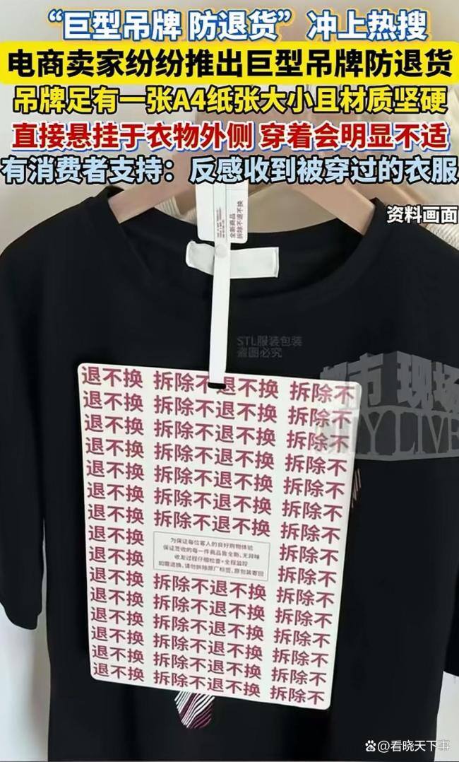 “巨型吊牌防退货”引发争议 消费者与商家的博弈!你有没有想过,一件刚拆封的裙子,还没来得及穿出门,就已经被贴上了一张比作业本还大的硬壳吊牌?这不仅硌着肩膀、磨着后背,仿佛还在无声警告:别想穿完就退。