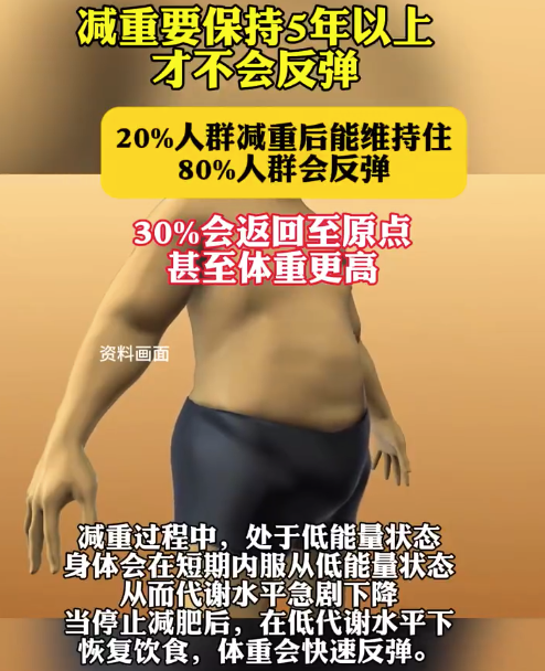 减肥成功后站在体重秤上,数字却悄悄回升,这种崩溃感堪比刚中彩票就弄丢奖券!专家表示,大约20%左右人群在减重后能够真正维持住自己的体重,80%的人群会反弹,其中30%会返回至原点,甚至体重更高。