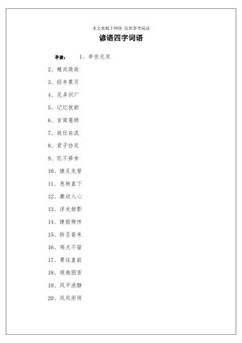 本篇文章给大家谈谈读书名言20句四字成语,以及关于读书的名人名言和四字词语对应的知识点,希望对各位有所帮助,不要忘了收藏本站喔。
