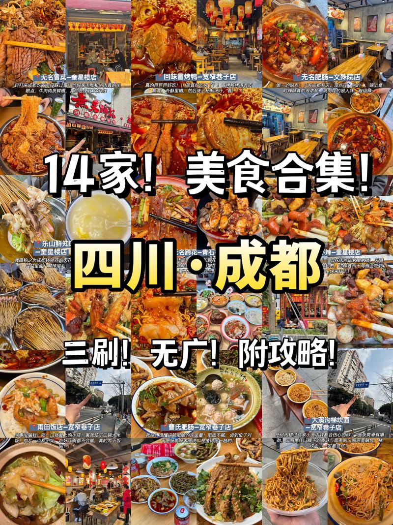 3、去成都必去的小吃有以下几处:春熙路:钟水饺:以其鲜香的口感著称,是成都水饺的代表之一。龙抄手:滑嫩可口,汤鲜味美,是成都著名的小吃之一。白家高记肥肠粉:肥肠粉醇厚,味道浓郁,深受食客喜爱。其乐锅魁:口感独特,香脆可口,是成都锅魁中的佼佼者。