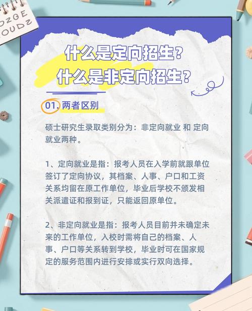 5、实现个人价值最大化。总结对比 定向就业与非定向就业是考研中的两种不同就业方式。定向就业为考生提供了稳定的就业前景,适合有明确职业规划的考生;非定向就业则具有更高的灵活性,适合希望发掘自身潜力、追求个人发展的考生。考生在选择时应充分考虑自己的职业规划和个人发展,选择适合自己的就业方式。