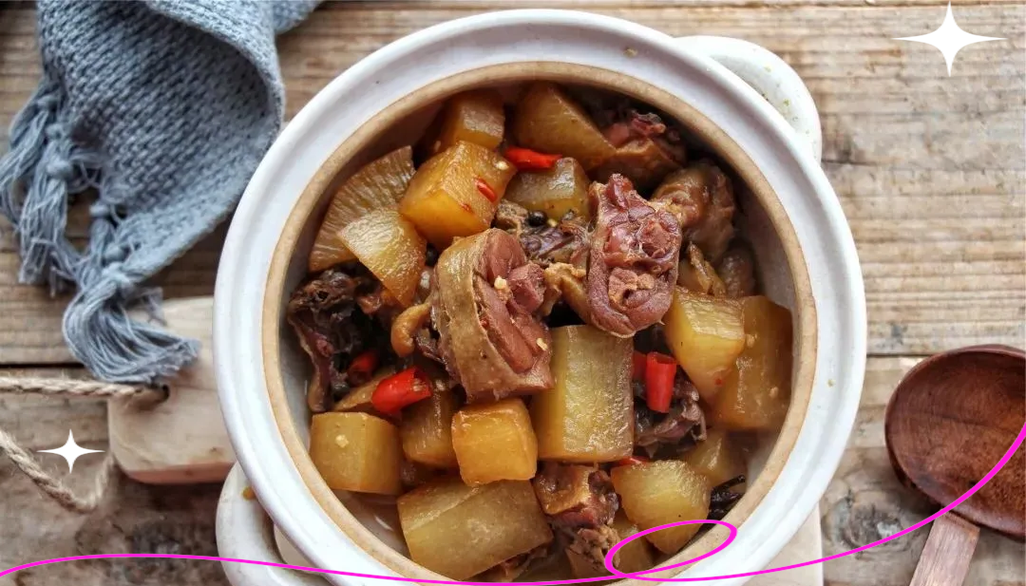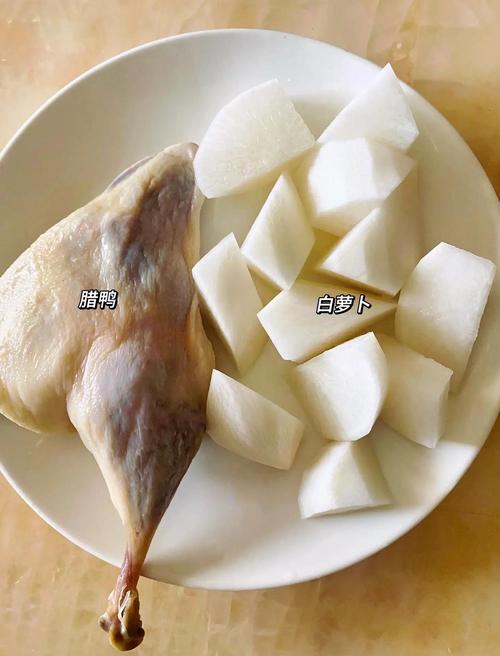 3、腊鸭和萝卜一起炖风味极佳。腊鸭与萝卜的搭配不仅能提升菜肴的口感,还能在营养上形成互补。以下是腊鸭炖萝卜的具体做法:材料准备 腊鸭:选择质地紧实、色泽红润的腊鸭,这样的腊鸭口感更佳。萝卜:选用新鲜的白萝卜,口感清甜,与腊鸭的咸香相得益彰。生姜:几片生姜用于去腥增香。