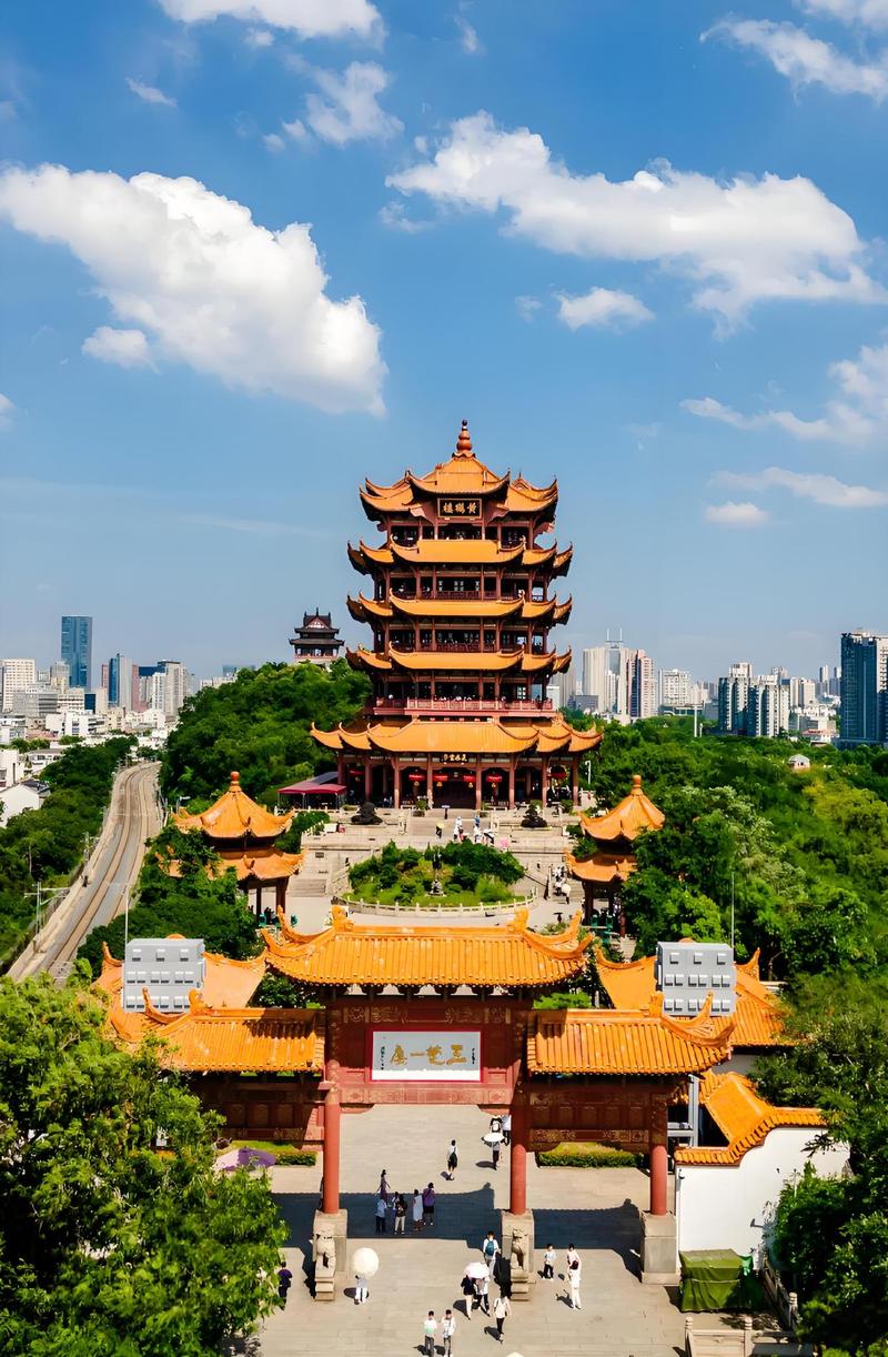 4、武当山 简介:武当山位于十堰市丹江口市,是道教圣地,有着丰富的历史文化底蕴。 游玩建议:可以参观古建筑群,体验道教文化,同时欣赏壮丽的自然风光。 黄鹤楼 简介:享有“天下江山第一楼”、“天下绝景”之称,是武汉的标志性建筑。 游玩建议:登楼远眺,欣赏长江美景,感受黄鹤楼的雄伟壮观。