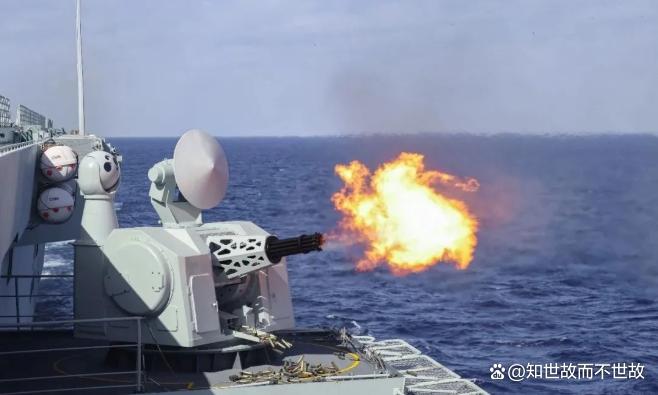 指挥员果断下达射击指令,副炮火舌喷涌,精准命中靶机。紧接着,数架舰载直升机呼啸升空,连续开展多波次、多架次高强度飞行训练。