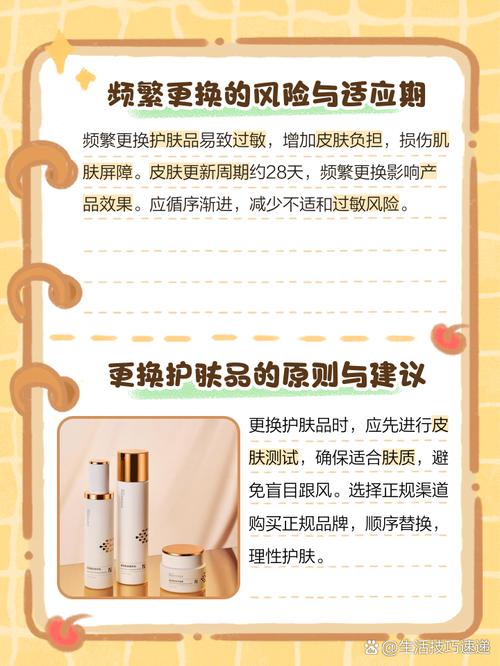 例如,干性肌肤可选择保湿效果较强的面霜和精华;油性肌肤则更注重控油和清爽的质地。此外,不同季节和年龄段也可能需要调整护肤品的种类和功效。总之,合理的护肤品更换和选择是保持肌肤健康与美丽的关键。在追求美丽的同时,也要注重肌肤的耐受性和适应性,避免过度依赖单一品牌或产品。