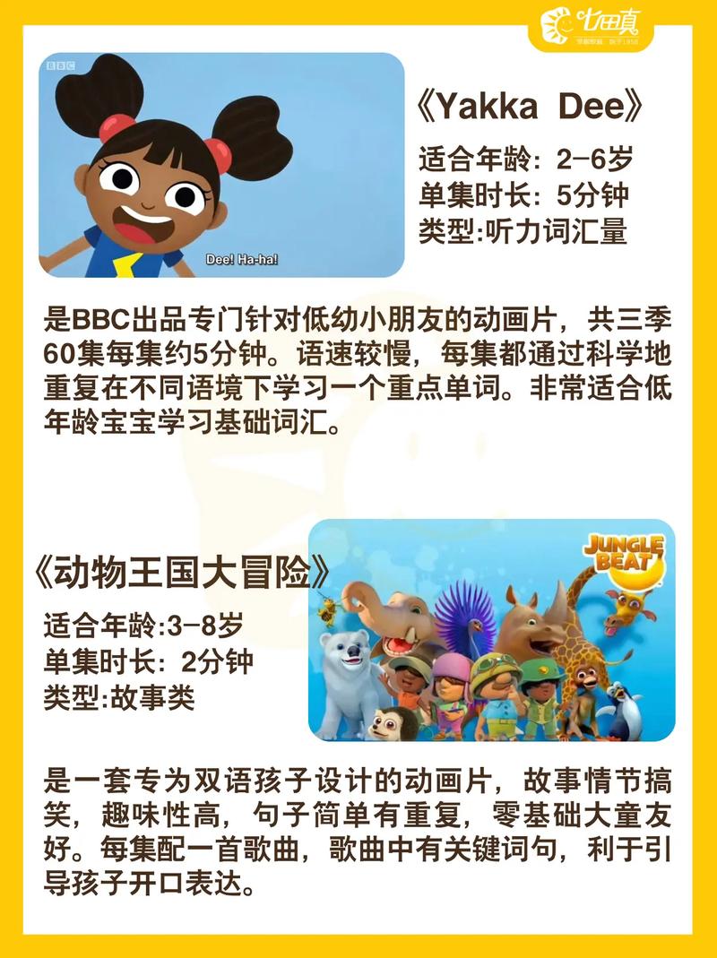 以下12部英文动画片适合陪孩子一起观看:《蓝色小考拉》:适合启蒙阶段的孩子,通过考拉Penelope贝贝的冒险故事,学习基础生活用语和礼仪。《神奇校车》:充满趣味与知识的动画片,跟随魔法校车探索太阳系、云朵和历史,寓教于乐。