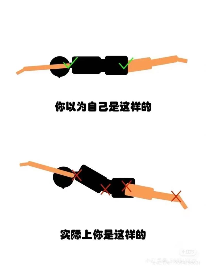 2、这才是自由泳中最好的身体流线型。在练习时我们可以参考全浸式练习方法,通过超人漂浮练习,夹板自由泳划臂练习来找到并强化这种身体状态。