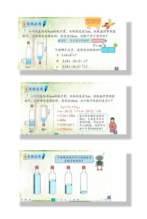 圆柱体的体积和容积的概念确实有所不同。根据公式V=Sh,圆柱体的体积计算方式是底面积乘以高度,这里的高度是指圆柱体的外部高度,而容积则是指内部空间的高度。这意味着,当我们讨论圆柱体的体积时,我们关注的是整个圆柱体所占的空间大小,包括其壁厚部分;而容积则仅考虑圆柱内部的空间大小。