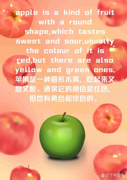 随着全球化的进程,英语作为国际通用语言,“apple”一词也被广泛认知和使用,无论是在科学研究、商业交流还是日常生活中,它都代表了苹果这一事物。由于其极高的知名度和普及度,“apple”已经成为一个无论在何种语境下都能被迅速识别和理解的词汇。
