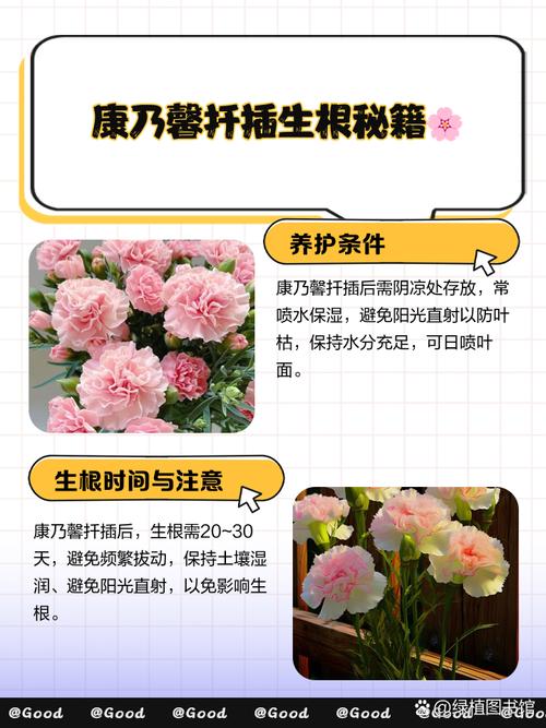 3、康乃馨夏天不可以扦插。以下是具体原因及相关建议:生长环境不适:康乃馨在夏季生长速度较慢,对养分和水分的吸收能力也较弱。此时扦插,康乃馨难以维持自身生长所需的养分和水分,容易导致扦插失败。最佳扦插时间:康乃馨的最佳扦插时间是在春季或秋季。这两个季节的温度和湿度条件更有利于康乃馨的生长和恢复。