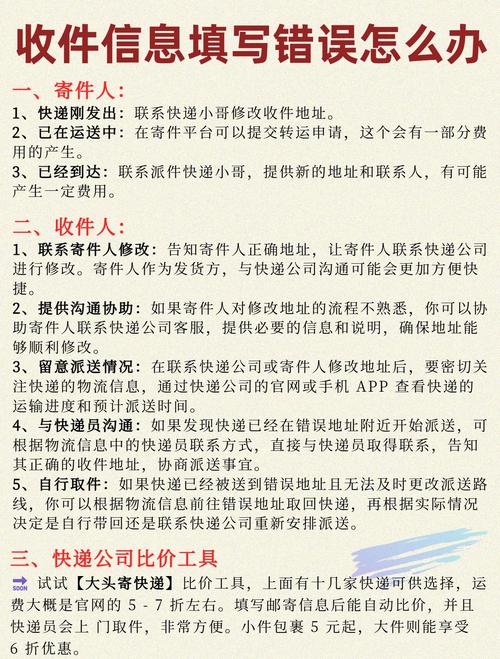 2、快递发错地址了是可以转运的。以下是关于快递转运的具体方法和注意事项:联系快递公司客服 直接拨打客服电话:你可以在网上搜索快递公司的客服电话,并拨打该电话。确保你拨打的是经过认证的客服电话,以避免遇到诈骗。提供必要信息:向客服人员提供你的发件手机号码以及快递单号(如果已知)。