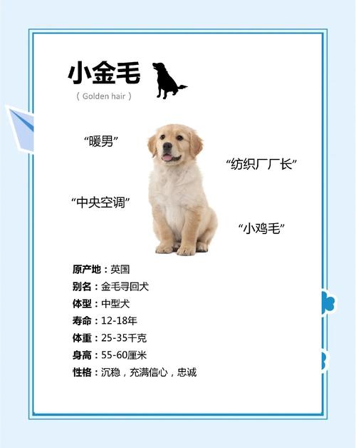 4、天的小金毛犬饲养方法如下:饮食管理:犬粮选择:为小金毛选择适合其幼龄阶段的专用犬粮,这些犬粮通常更易消化且营养全面。喂食方式:用热水将犬粮泡软后再喂食,这样有助于小金毛的消化和吸收。同时,要注意控制喂食量,避免过量导致消化不良。