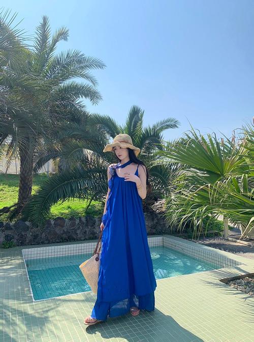 4、藏蓝色的吊带长裙是一种非常优雅且具有高级感的单品,它能够很好地展现出女性的柔美与气质。要搭配出精致飘逸的感觉,可以从以下几个方面入手:选择合适的内搭:由于吊带长裙的露肤度较高,可以选择一件简约的白色或浅色系紧身打底衫作为内搭,既保持了整体的轻盈感,又增加了层次感。