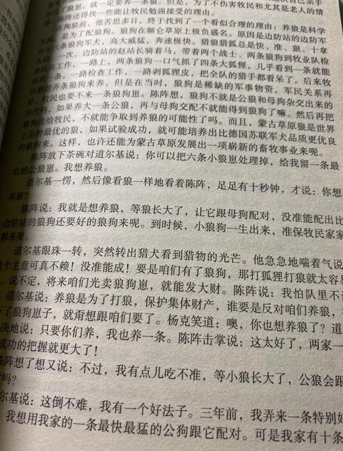 6、《狼图腾》是一部对人性深刻考问的作品,它将古老草原文明的追忆与赞美交织在一起,通过人物间的对比展现***,同时揭露并唾弃丑恶人性。这本书不仅具备文学性,还蕴含着丰富的知识性,如草原人的生活习惯、草原狼的生活习性等。这样的作品在充斥着浮夸言论的文坛上,无疑给人带来耳目一新的感受。
