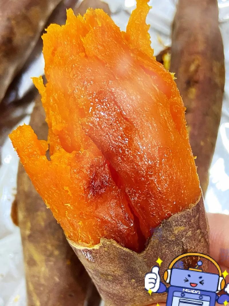 4、判断熟度:烤好后,取出红薯用手轻轻捏一捏,如果感觉软了,说明已经烤熟了。健康小贴士 微波炉烤红薯不用放油,比传统烤制方法更健康。红薯的果肉呈橙色,是富含β-胡萝卜素的食物,具有抗氧化作用。红薯的皮含有丰富的膳食纤维,可以促进肠道蠕动。