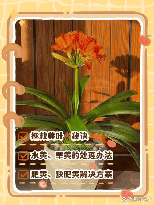 3、君子兰叶子发黄的原因主要有浇水过多、施肥过多和光照不足,处理方法如下: 浇水过多 原因:君子兰比较抗旱,非常怕积水,浇水过多会导致黄叶。 处理方法:检查根部情况,如未腐烂,停止浇水并放置在阴凉通风处加速水分蒸发;如根部已腐烂,需清理腐烂根部,消毒后重新上盆。