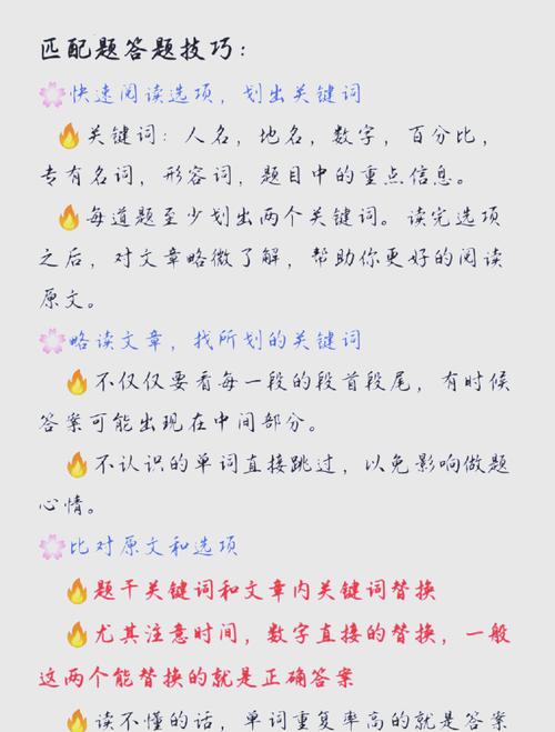 这些不仅能提升孩子的阅读速度和能力,还能拓宽他们的视野。除了兴趣,还要教孩子掌握一定的答题技巧。阅读题往往不难,但也不要将题目想得太复杂。我曾因过分复杂化题目而错失了得分的机会。关键是要抓住文章的中心思想。文章的主旨通常在开头或结尾有所体现,仔细阅读,多读几遍,就能找到答案。