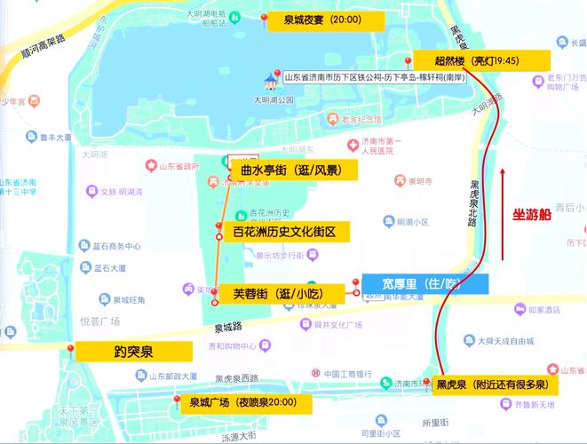 购票与登船:您可以直接到码头购买船票,或者提前通过在线平台预订。建议在旺季或节假日前提前预订,以避免排长队。登船时,请按照工作人员的指示入座,并注意安全。游览路线:游船通常有固定的路线,沿途会经过多个著名的泉水和古迹。例如,从趵突泉出发,游船会经过解放阁、大明湖、五龙潭等地。