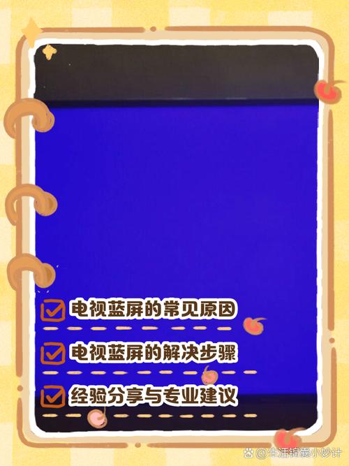 原因:天线没有接好,或者有条线松了。蓝屏是电视对没有稳定信号频率的显示。解决方法:检查天线的线路和接口,确保所有连接都牢固无误。如果发现松动的线路或接口,请重新固定一次。电视机内部元件松动 原因:电视机内部的某些元件可能松动,或者显像管不稳定。