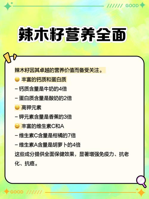 4、辣木籽源于辣木树,这是一种隶属于辣木科辣木属的特殊植物。辣木树在生长周期中,其果实会在每年的6月至12月间逐渐成熟。此时,果实内部会孕育出珍贵的辣木籽。为了保持辣木籽的品质,一旦果实熟透,应及时摘取,将籽粒摘出并妥善储存。