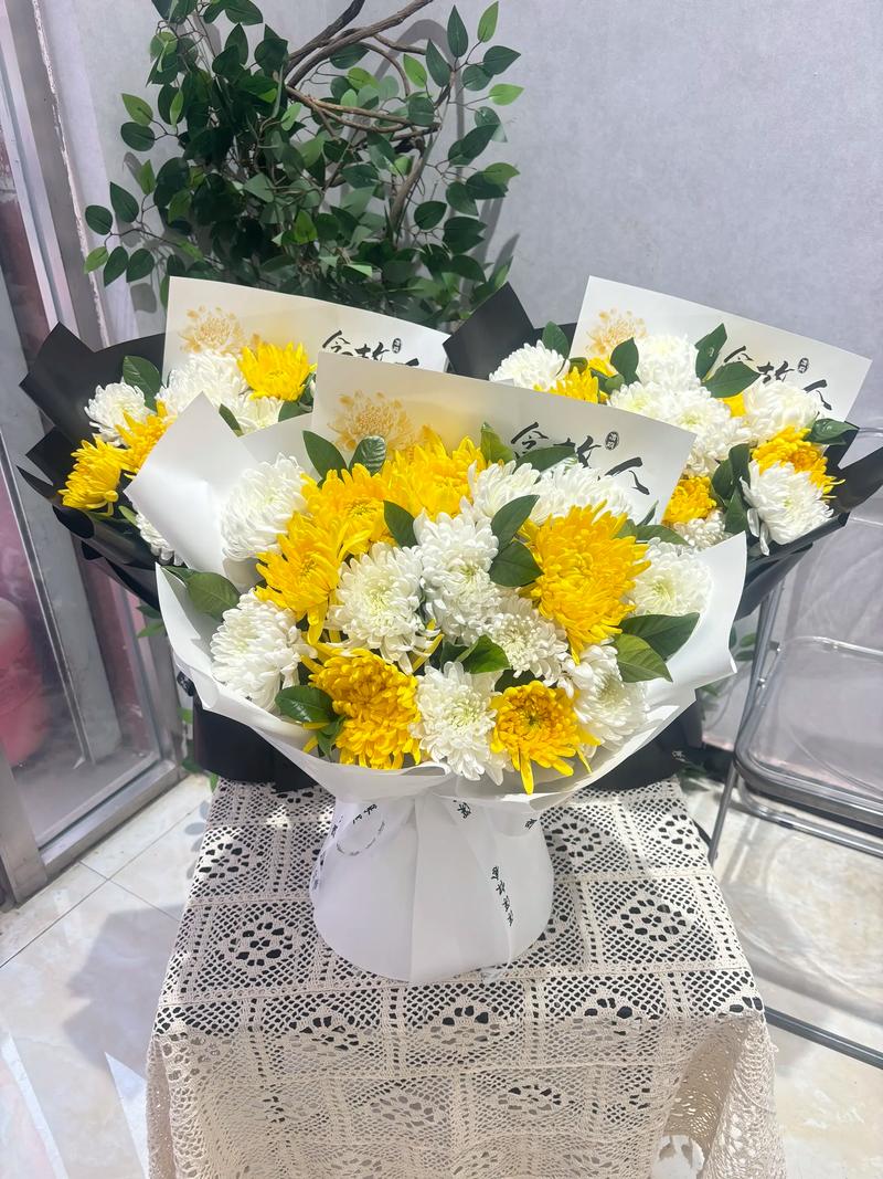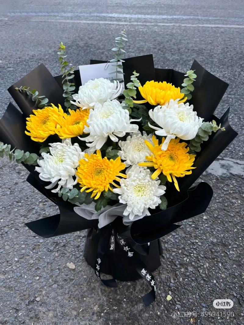 2、清明时节菊花的包装形式需兼顾美观与实用,以契合节日氛围与人们祭扫需求。 简约纸艺包装:采用素色纸张,如白色、淡米色或淡绿色,这些颜色能营造出淡雅、肃穆之感。将菊花简单包裹,在花束基部系上细麻线或淡色丝带,凸显自然质朴,符合清明追思故人的氛围。