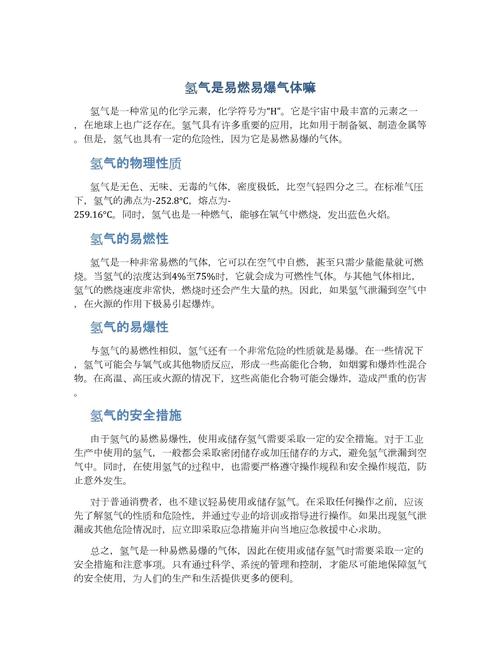 1、氢气的密度不大于空气的密度,实际上氢气的密度小于空气的密度。氢气与空气密度的对比 氢气是世界上已知的最轻的气体之一,其密度显著小于空气。具体来说,氢气的密度只有空气的1/14。在标准大气压和0℃的条件下,氢气的密度为0.0899g/L,而空气的密度则远大于此值。这种密度差异使得氢气在特定应用中具有独特优势。