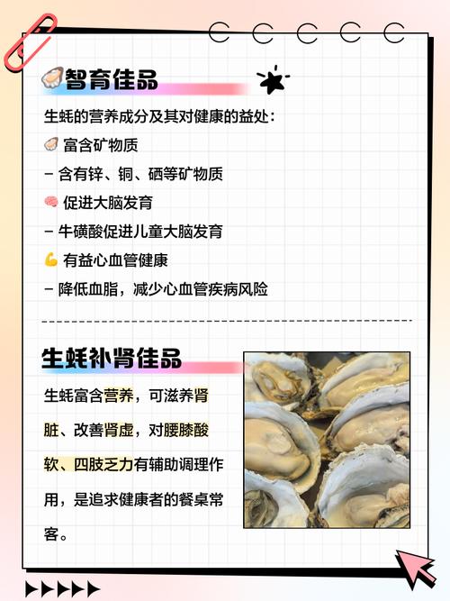 女孩子吃生蚝是有好处的。以下是女孩子吃生蚝的具体益处:滋阴补肾,增强体质:生蚝具有补肾功能,能增强女性的体质,有助于预防过早衰老。美容肌肤:生蚝中的各种维生素能滋润女性皮肤,使肌肤光滑有血色,让女性的肌肤变得更加美丽。