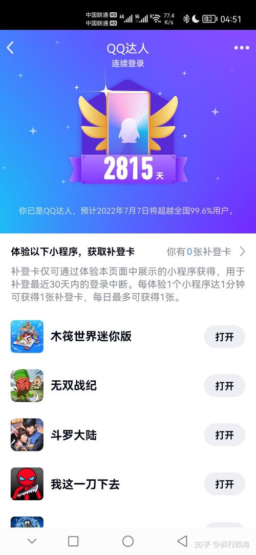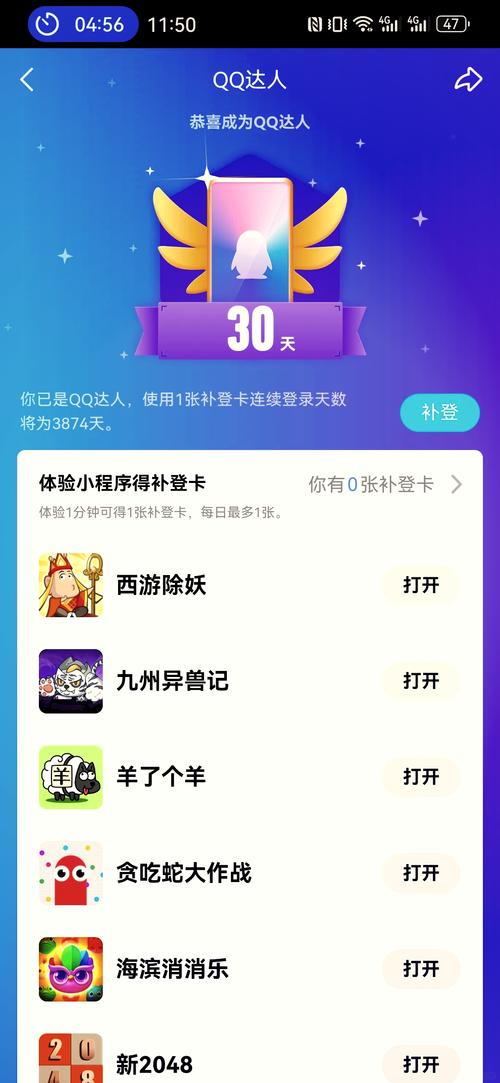 你的QQ达人身份就会消失。而要想再次获得QQ达人身份,就需要连续在线30天。这对于玩家来说,既是挑战也是激励,需要玩家保持较高的活跃度。QQ达人身份的这种设置,不仅增加了游戏的趣味性,也让玩家有了更多的目标和动力。通过持续的在线活动,玩家可以保持自己的QQ达人身份,享受更多的游戏福利。