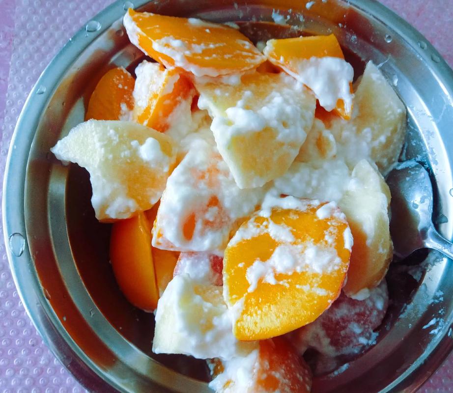 3、苹果和酸奶能一起吃吗 酸奶可以和苹果拌着吃的。酸奶的营养价值几乎满分,美中不足的是比较缺乏维生素C,因此酸奶若能与水果搭配,无论口感和营养都十分理想。像莲雾、苹果、梨子、杨桃等,在加入酸奶前先用2%的柠檬水泡一下,可以避免氧化变黑。酸奶也可变换吃法。