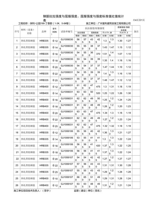 4、预应力筋主要用于提高结构的强度和刚度,其抗拉抗压屈服强度标准值fpyk同样具有重要参考价值。在预应力钢丝中,中强度预应力钢丝的屈服强度标准值范围在800N/mm2至1270N/mm2之间。预应力螺纹钢筋的屈服强度标准值fpyk范围则在980N/mm2至1230N/mm2之间。