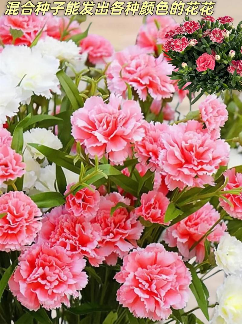 3、康乃馨种子什么时候种植最好康乃馨最适宜播种时间是9-10月份,因为这时的气候最为适宜,等到来年春天就可以开花。康乃馨是一种多年生的草本植物,从播种到出芽大约需要10-15天左右的时间,其在开花过后会有蒴果长出,种子就长在其果实里面,将果皮去除后就可以得到种子了。
